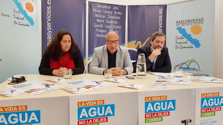 En la campaña que ha arrancado esta mañana conmemorando el Día Mundial del Agua han participado Sergio García, Presidente de la Mancomunidad, Mª José Sánchez, delegada de economía y ciclo integral del agua de la Mancomunidad y alcaldesa de Albuñol y Justo Suárez, gerente de Aguas y Servicios.