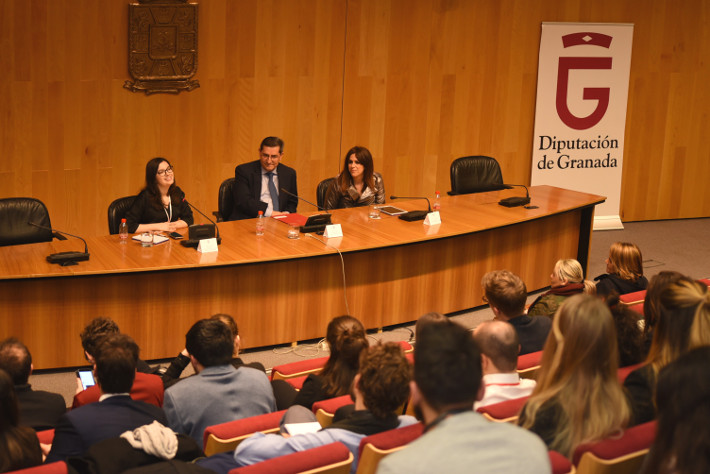 El presidente de la Diputación de Granada, José Entrena, la diputada de Igualdad y Juventud, Irene Justo, y la directora general del Model European Union Granada, Laura Piel Martín, han inaugurado esta mañana el encuentro y les han dado la bienvenida a la ciudad.