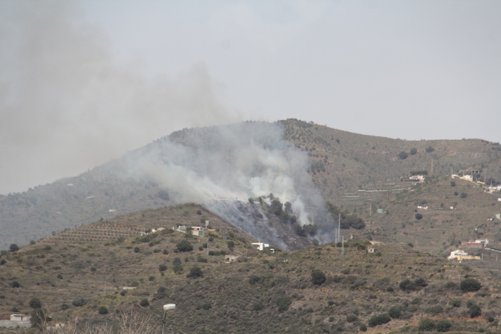 El humo y las llamas se podían divisar desde distintos puntos del municipio sexitano. Y es que aunque se iniciaba en la zona baja de la Loma del Gato no tardaba en ascender la loma con ayuda del viento hasta alcanzar el entorno de la vivienda denominada “Casa La Luna” y otras próximas. De hecho, el agua de la piscina de la citada vivienda, sirvió de abastecimiento a los Bomberos de Almuñécar.