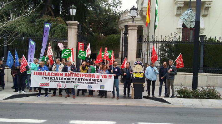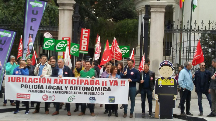 Los representantes sindicales de la policÃa local han vuelto a alzar su voz contra el Gobierno, y manifestar públicamente su malestar e indignación por su total dejación y por no haber cumplido aún su compromiso con los policÃas locales, considerando al Ministro de Hacienda el responsable directo de este conflicto. Y ello, porque la tramitación del Decreto que reconocerÃa esta jubilación anticipada, compromiso del Gobierno desde hace cuatro años, está bloqueado de forma unilateral e injustificada, al no remitir al Ministerio de Empleo y Seguridad Social el informe que éste le solicitó el pasado mes de octubre, para asà poder culminarlo definitivamente.