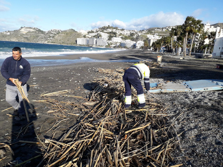 Desde la empresa Urbaser, han estimado en casi 300.000 kilos los residuos que se retirarán de las playas sexitanas. “El trabajo que hemos hecho ya en varias ocasiones hay que volver hacerlo de nuevo ante el fuerte vendaval en el mar”, manifestó el encargado, Miguel Cabrera.