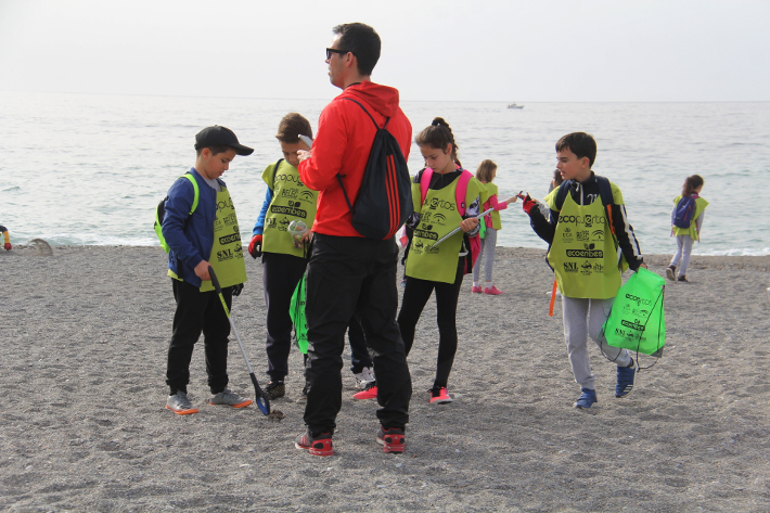 Unos 60 alumnos de los cursos de 4, 5, y 6º de Primaria del Colegio Público “La Noria” de Almuñécar, siguiendo la línea ecológica en la que viene trabajando desde hace 9 años, han realizado una inspección costera en las playas de El Tesorillo y Velilla dentro del programa “Cuidemos la Costa”.