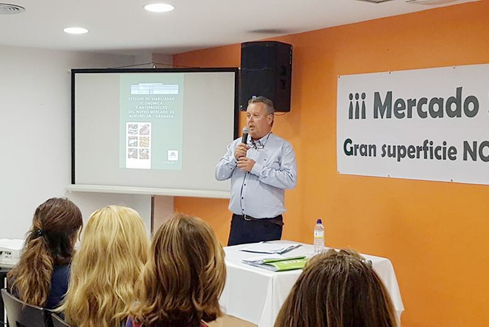 El andalucista, Juan Carlos Benavides, explicaba la pasada noche a un centenar y medio de comerciantes y vecinos del entorno del Mercado de Almuñécar y el centro comercial sexitano, el contenido del Estudio de Viabilidad del proyecto del nuevo Mercado que aprobó en pleno el Equipo de Gobierno con el voto en contra de la oposición.