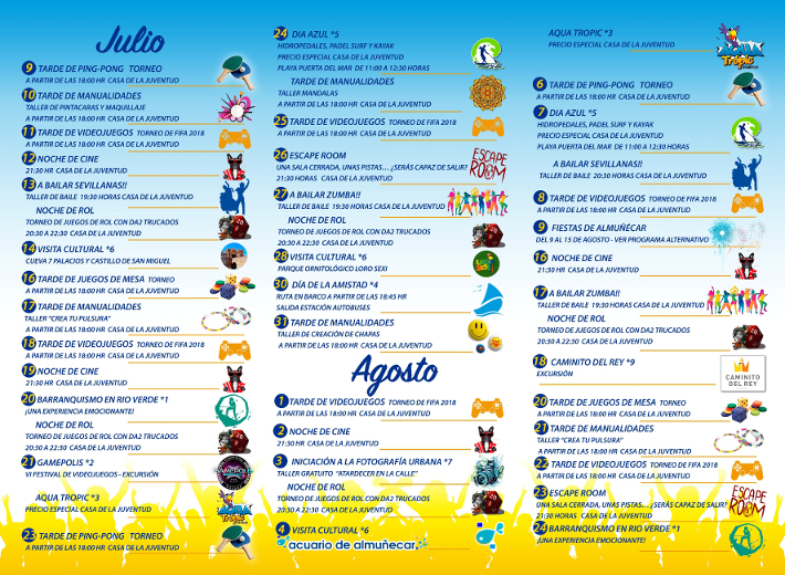 María del Mar Medina manifiesto que “el programa arranca esta semana y se prolongará hasta mediados de septiembre. Entre las actividades destacadas se han propuesto una serie de visitas como la visita al parque acuático, Aquatropic, Día Azul en Puerta del Mar ,con actividades náuticas; a ello se suman excursiones a: Camino del Rey, Isla Mágica o museos Málaga, entre otras sumando visitas guiadas en el municipio donde, además de los jóvenes se pueda unir la familia, incluso”, explicó María del Mar Medina.