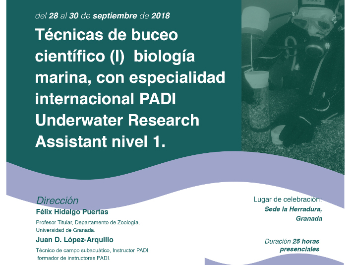 El curso de buceo de la UGR, impartido a través del Centro Mediterráneo tiene como objetivo dotar de conocimientos técnicos y legales y capacidades físicas y técnicas subacuáticas a estudiantes, graduados o alumnos en la investigación en el ámbito marino, con diploma de la Universidad de Granada y sendas certificaciones internacionales PADI, Underwater Research Assistant (asistente de investigación subacuática) específicamente desarrolladas para los cursos de buceo científico del Centro Mediterráneo de la Universidad de Granada.