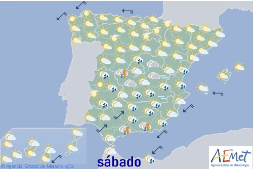 La Agencia Estatal de Meteorología (AEMET) ha activado entre las 00.00 y las 20.00 horas de mañana sábado el aviso naranja por lluvias en las comarcas malagueñas de Axarquía, Sol y Guadalhorce, donde se esperan precipitaciones de 30mm en