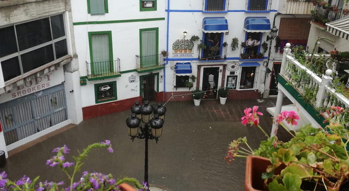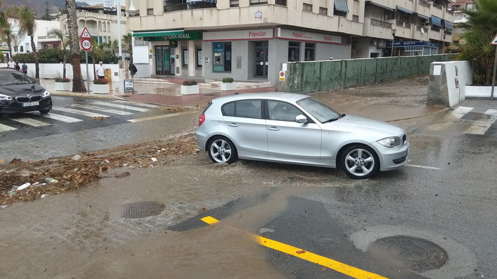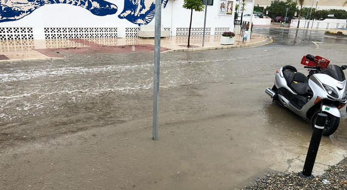 Las incidencias se ha recibido esta tarde principalmente por inundaciones en zonas como: La Paloma, Blas Infante, Avenida Costa del Sol, Punta de Velilla, Hurtado de Mendoza y Príncipe de Asturias. A ello se suma desprendimiento de cornisa en calle Mariana Pineda o la avería de semáforos en el cruce de CN340 en La Paloma, según informó un portavoz de la Policía Local.