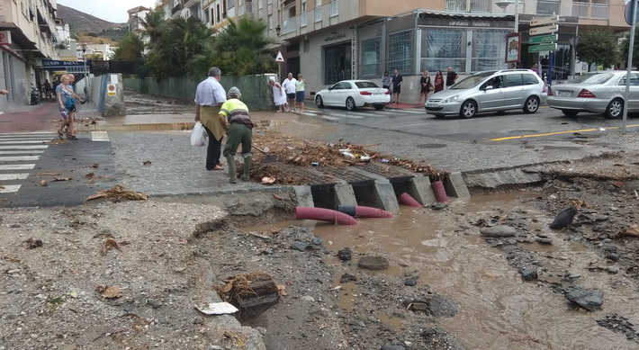 Tras los efectos de arrastre en la desembocadura de la rambla del Espinar y otras zonas, se pudo en marcha un operativo de limpieza por parte del servicio de Mantenimiento Municipal coordinado por la Tenencia de Alcaldía. Esto hizo que se habilitara paso de personas y vehículos en la zona.