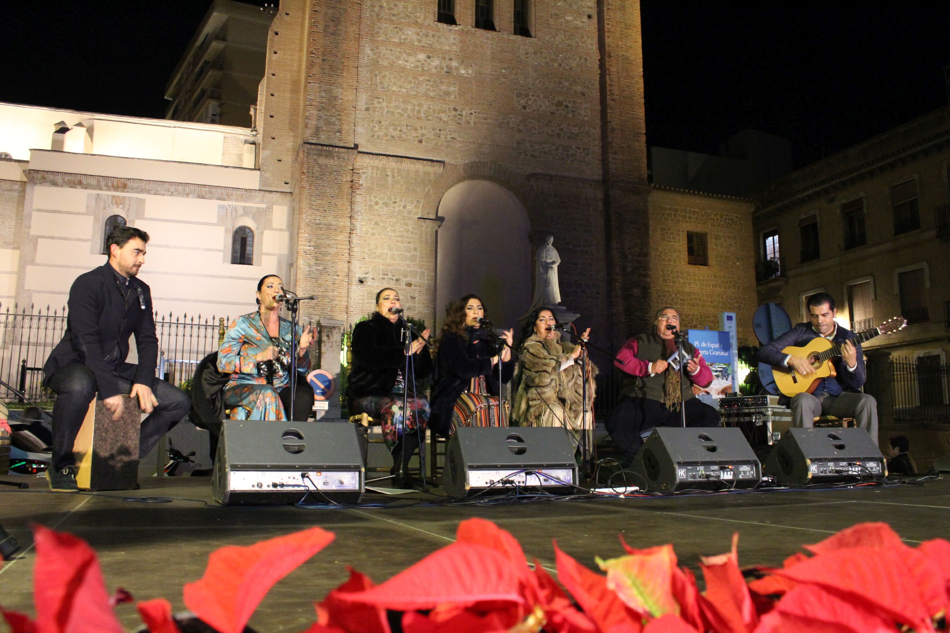 El arte flamenco de Lela Soto ‘Sordera’ junto a Antonio Carrión, Mariano Cortés y Gilberto de la Luz; la familia de ‘Los Cañeros’; el cantaor Julio Fajardo acompañado de Ángel Torres y Miguel Ángel Martín; las bailaoras Vero ‘La India’ y Jara Heredia; y el conocido artista y compositor Enrique Casellas, han convertido la plaza de España en una auténtica fiesta llena de los mejores villancicos flamencos.