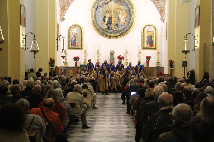 La iglesia de la Encarnación se llenó de público para escuchar el Coro Gospel Sounds Granada que ofreció un repertorio variado y que recibió el aplauso del público sexitano.