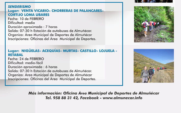 El área Municipal de Deportes de Almuñécar ha dado a conocer la agenda de actividades de eventos deportivos extraordinarios o destacados que promueve y acoge el municipio sexitano este mes de febrero.