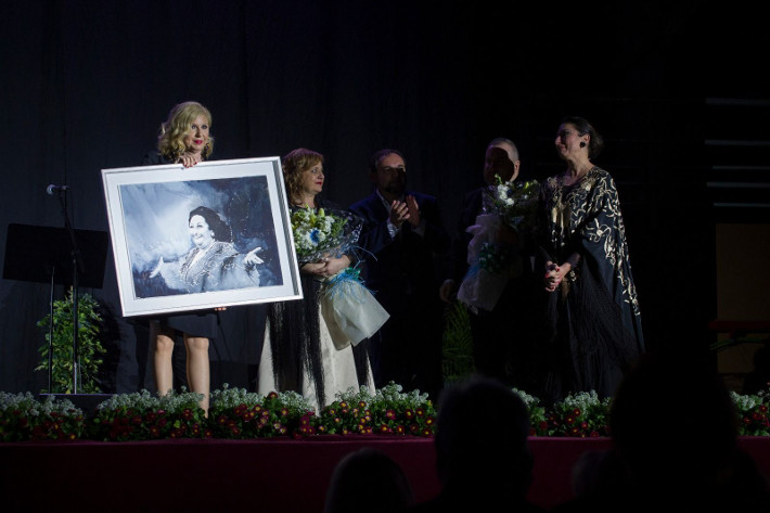 En el ecuador de la segunda parte del recital, la acuarelista motrileña, Mar Aragón, tuvo el gran privilegio de subir al escenario y entregarle a Montserrat Martí un retrato de su Madre, Montserrat Caballé, que emocionó a la artista y, por contagio y recuerdo emocional de la gran diva, al resto del auditorio.