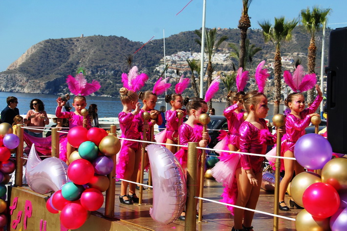 El pasacalles lo abría el grupo tambores del Taller Musical de La Herradura bajo la coordinación de Sole Drummer que se encargó de marcar el ritmo a los más pequeños. También contó con dos coreografías de Pura Danza así como dos carrozas que portaban las más pequeñas y la Reina del Carnaval.
