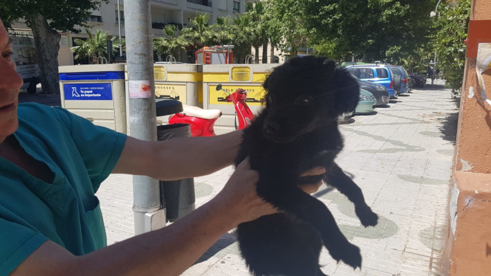 Se trata de un cachorro de perro negro que, tras el rescate, está siendo atendido para después intentar darlo en adopción y encuentre una familia con la que pasar una vida feliz.