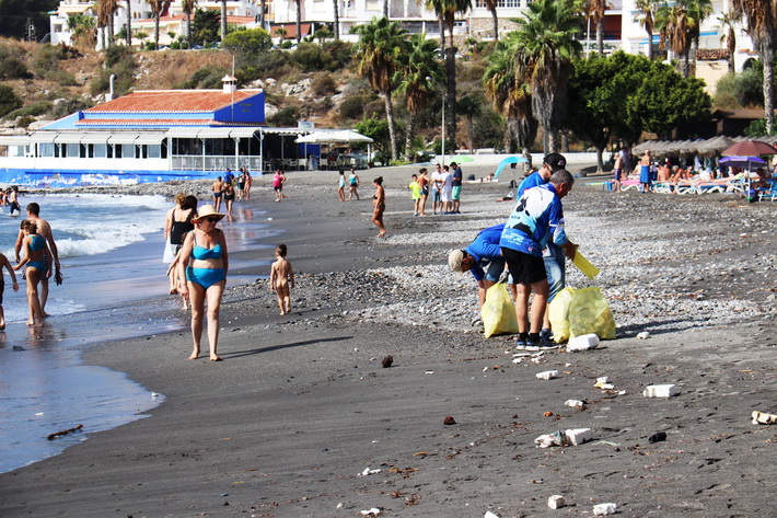 La iniciativa, que cont贸 con la colaboraci贸n del 脕rea Municipal de Medio Ambiente y la empresa de limpieza FCC; arranc贸 a primera hora de la ma帽ana con una limpieza por las piedras del promontorio que separan ambas playas: El Pozuelo y El Tesorillo para, despu茅s, embarcaciones proceder a la retirada de residuos que flotaban en el mar, procedentes de riadas que d铆as pasados afectaron a la zona de Almer铆a y este de la Costa Tropical.