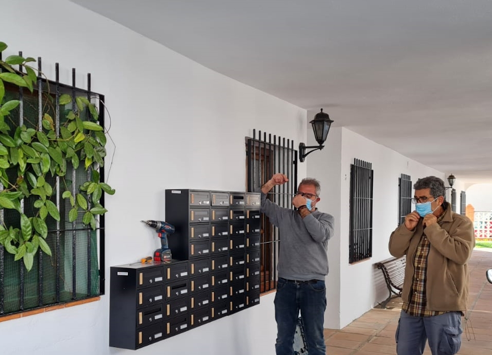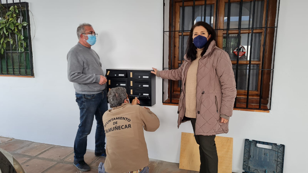 La concejalía de Servicios Sociales del Ayuntamiento de Almuñécar sigue mejorando los servicios de los vecinos residentes del Complejo de la Tercera Edad. Si hace unos días se procedía a sustituir las antenas de televisión, en esta ocasión, y tras las condiciones marcadas por la pandemia y Correos, se ha procedido por los operarios municipales de Mantenimiento a la instalación de buzones para la comunicación de los vecinos y también el Club del Pensionista.