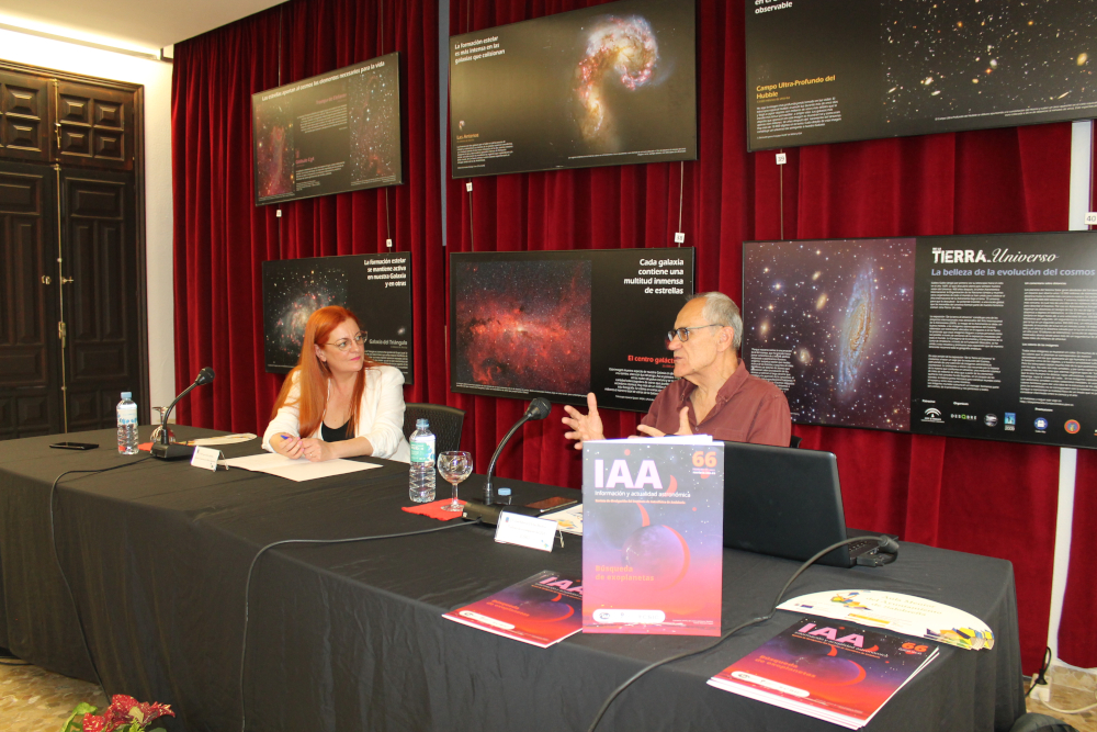 Bajo el título 'De la Tierra al Universo', el profesor José M. Vilchez deleitó el pasado viernes a los presentes en la sala de exposiciones de la Biblioteca Municipal con una conferencia sobre el origen del universo. Fue de forma previa a la inauguración de la muestra que reúne, hasta el próximo 10 de junio, una selección de imágenes del cosmos tomados desde diferentes observatorios del mundo.